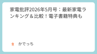 家電批評2026年5月号の電子書籍版!最新家電ランキングと徹底比較で、本当に使える家電が見つかる!限定特典付きで990円。購入はこちらから。賢い家電選びで、あなたの生活をアップデートしましょう!