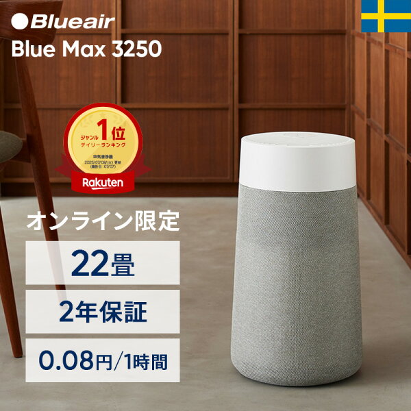 空気清浄機 ブルーエア Blue Max 3250 22畳 花粉 ニオイ オンライン限定 ハウスダスト PM2.5 ウイルス カビ 省エネ 黄砂 節電 おすすめ お手入れ簡単 脱臭 静か シンプル 子供部屋 北欧デザイン Blueair 【公式】は、その名の通り、オンライン限定で販売されているモデルです。実店舗では販売されていないため、実際に商品を見て触れることはできませんが、その分、コストパフォーマンスに優れているのが特徴です。