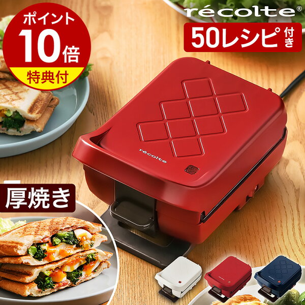 ホットサンドメーカー【50種レシピ本+選べる特典付き】レコルト プラッド 厚焼き 電気 耳まで プレスサンドメーカー ホットサンド 1枚焼き おうちカフェ 食パン サンドイッチ 朝食 ギフト RPS-2 RPS2 おすすめ 軽食 時短調理[ recolte Press Sand Maker Plaid ]には、なんと50種類ものレシピが掲載されたレシピ本が付属しています。定番のハムチーズから、デザート系まで、色々なホットサンドのアイデアが満載です。