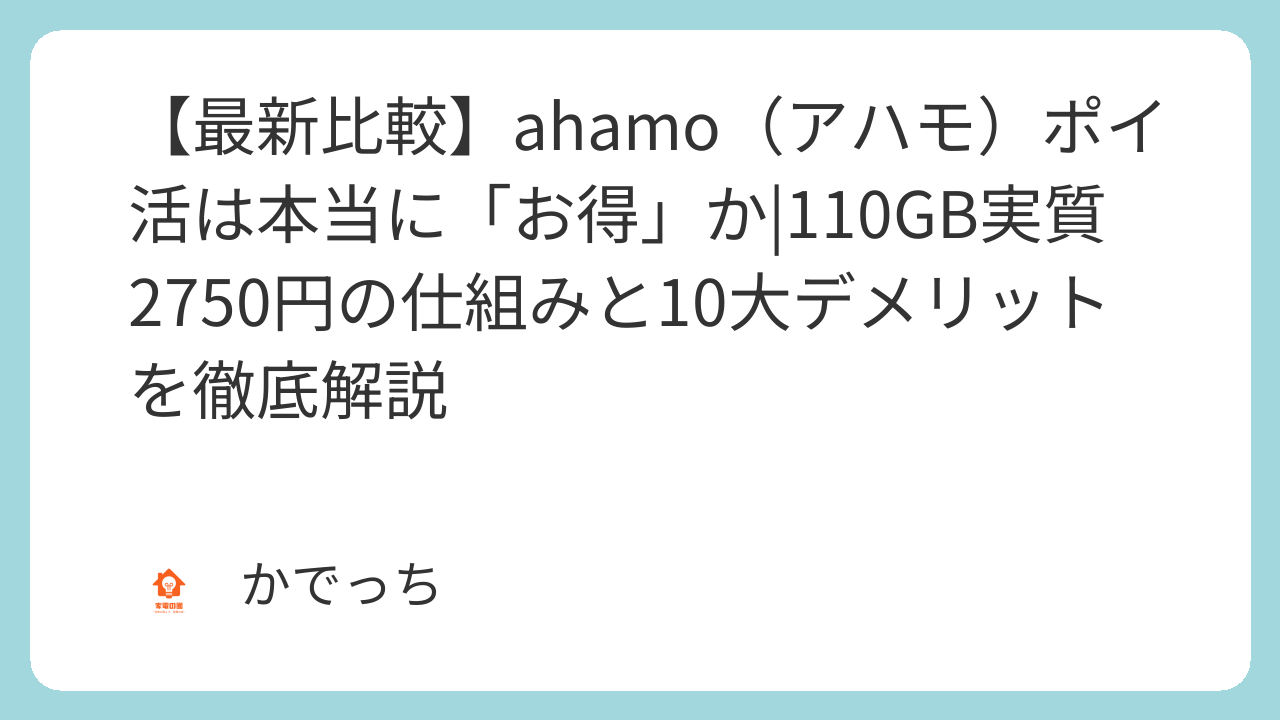 こんにちは、かでよです。スマートフォン料金を抑えたいけど、ギガもポイントも気になるあなたへ。ドコモが提供する「ahamo ポイ活」は、月額7,150円で110GBを実質2,750円に抑えられると話題ですが、本当にお得なのでしょうか。