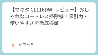 スティッククリーナー 【マキタ CL116DWI レビュー】おしゃれなコードレス掃除機!吸引力・使いやすさを徹底検証 マキタCL116DWIを徹底レビュー!おしゃれなアイボリー色のコードレス掃除機は、吸引力も使いやすさも優秀?10.8Vバッテリ内蔵でパワフル。11,664円で手軽に購入できる、その実力を検証しました。 2026.04.15 スティッククリーナー
