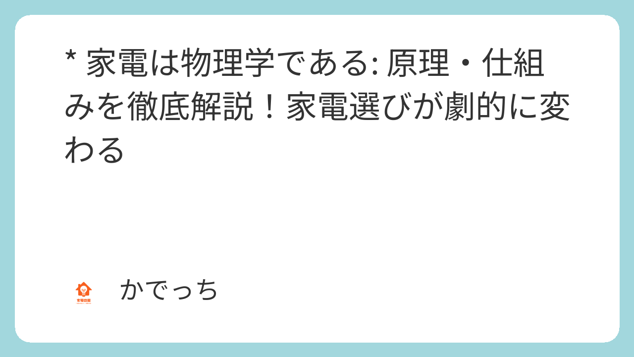 こんにちは、かでっちです。最近、家電量販店に行くと、多機能で高性能な家電製品がたくさんあって、どれを選んだら良いか迷ってしまうことってありませんか? カタログを見ても専門用語ばかりで、結局店員さんにおすすめされるがままに買ってしまったり……。そんな経験から、家電の裏側にある物理学に興味を持つようになりました。
